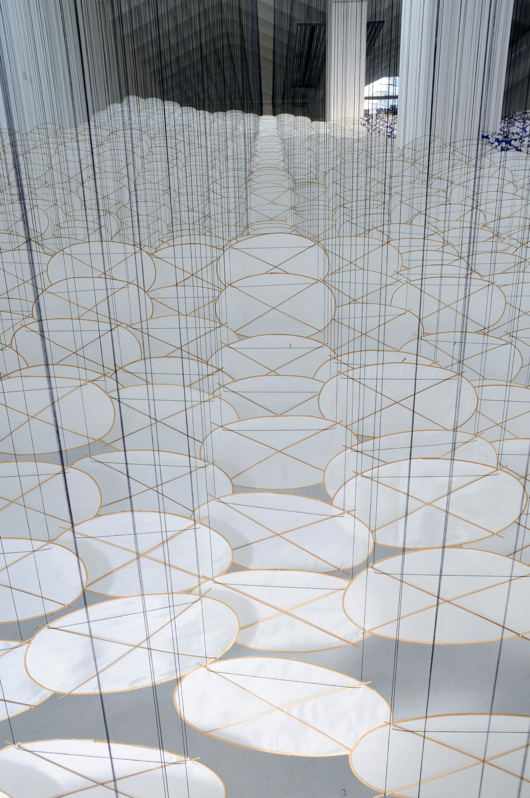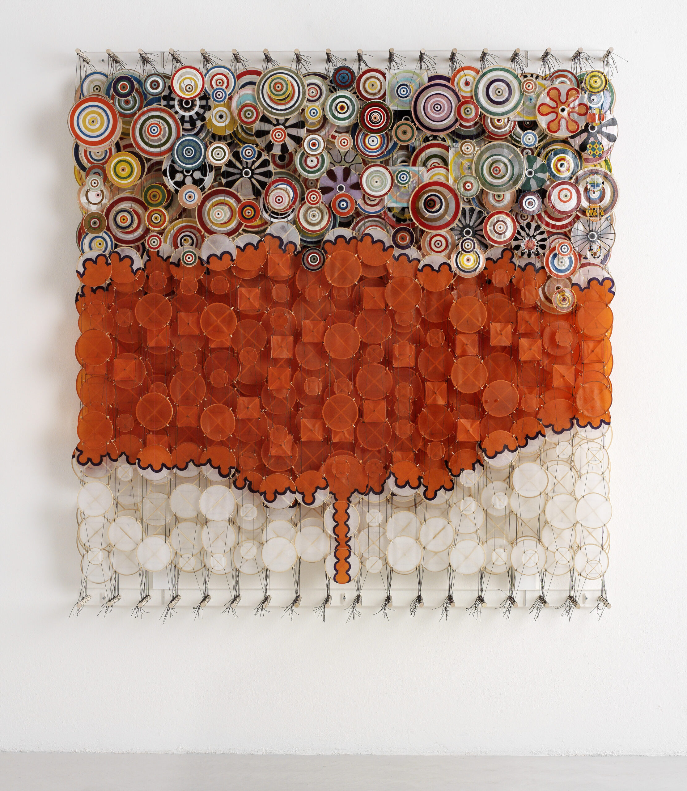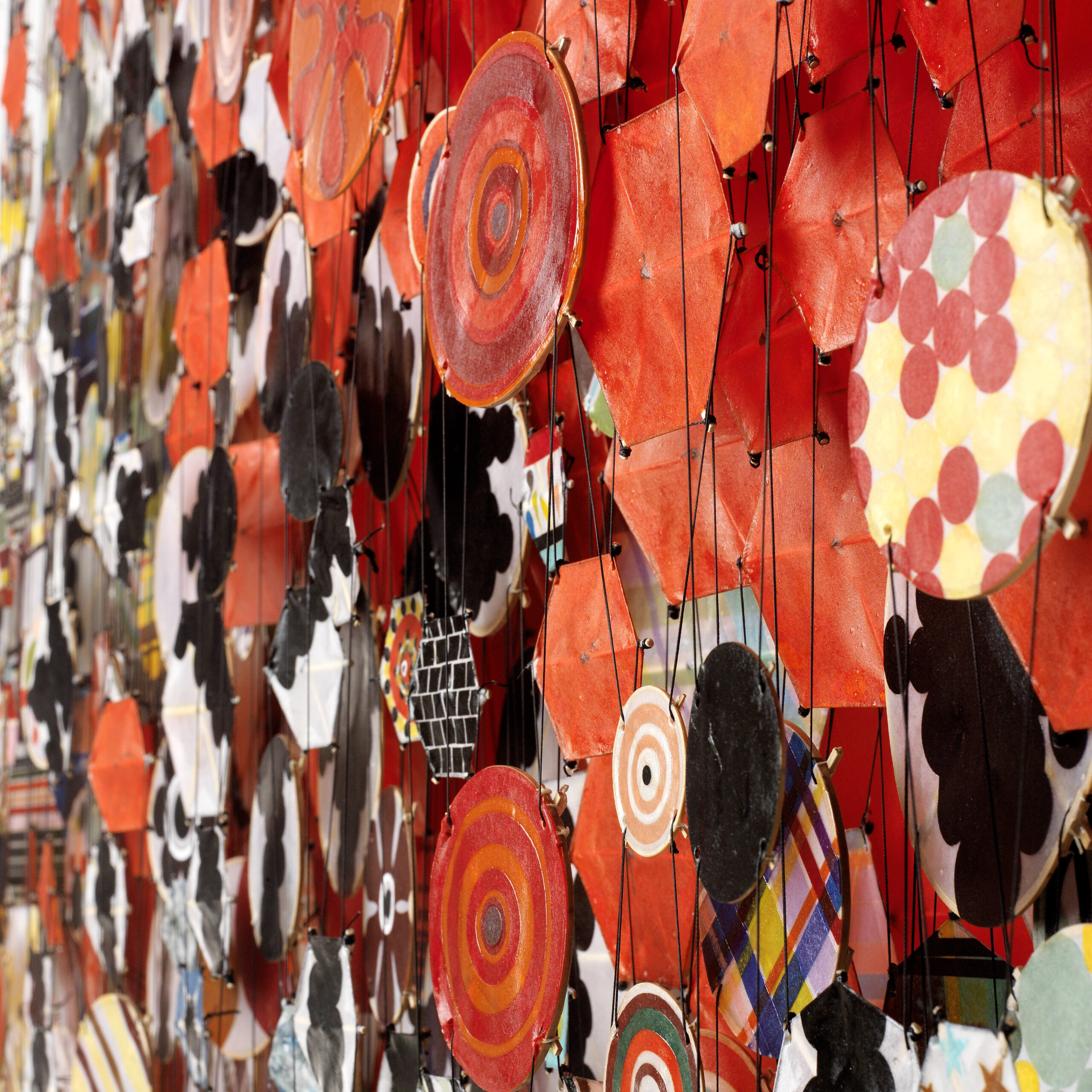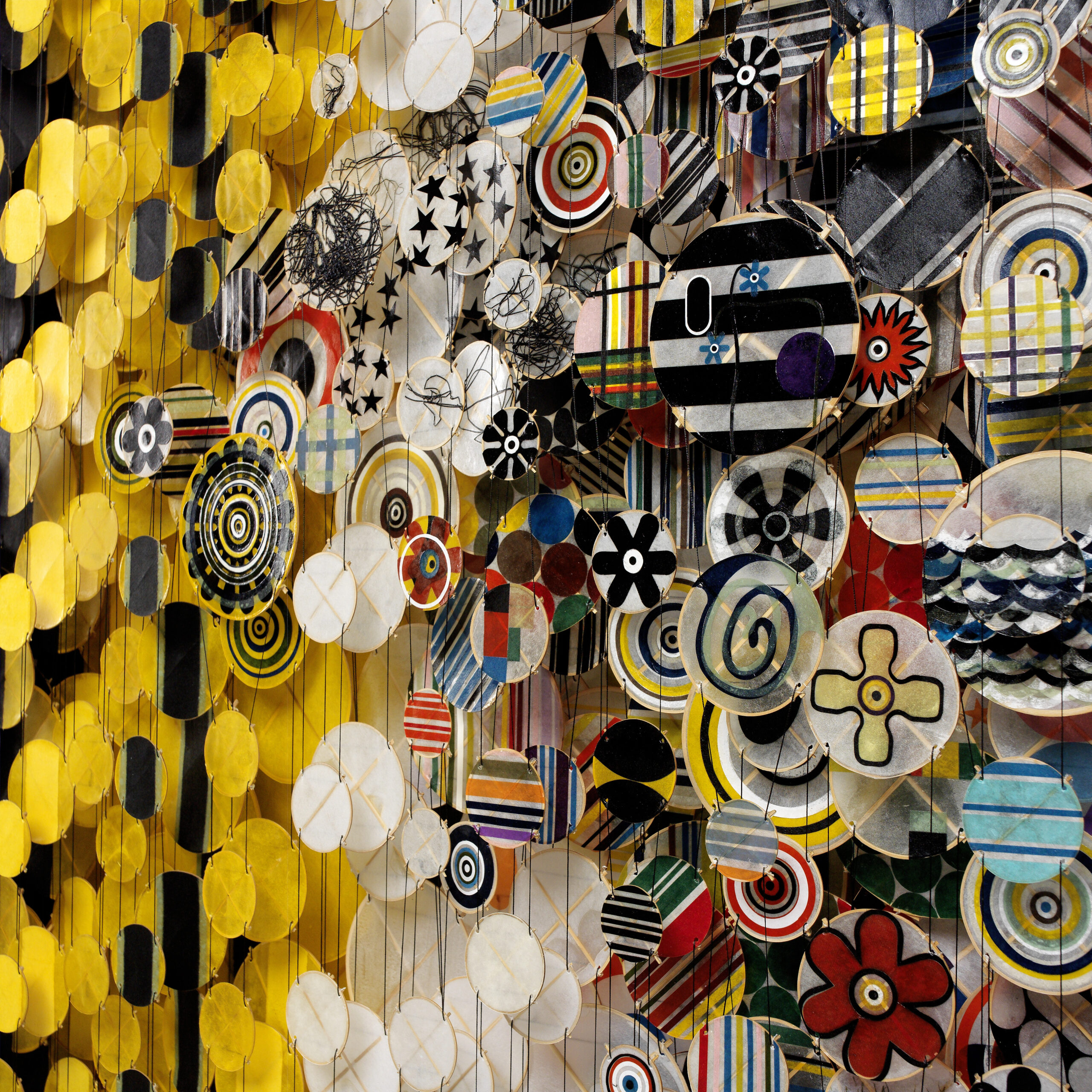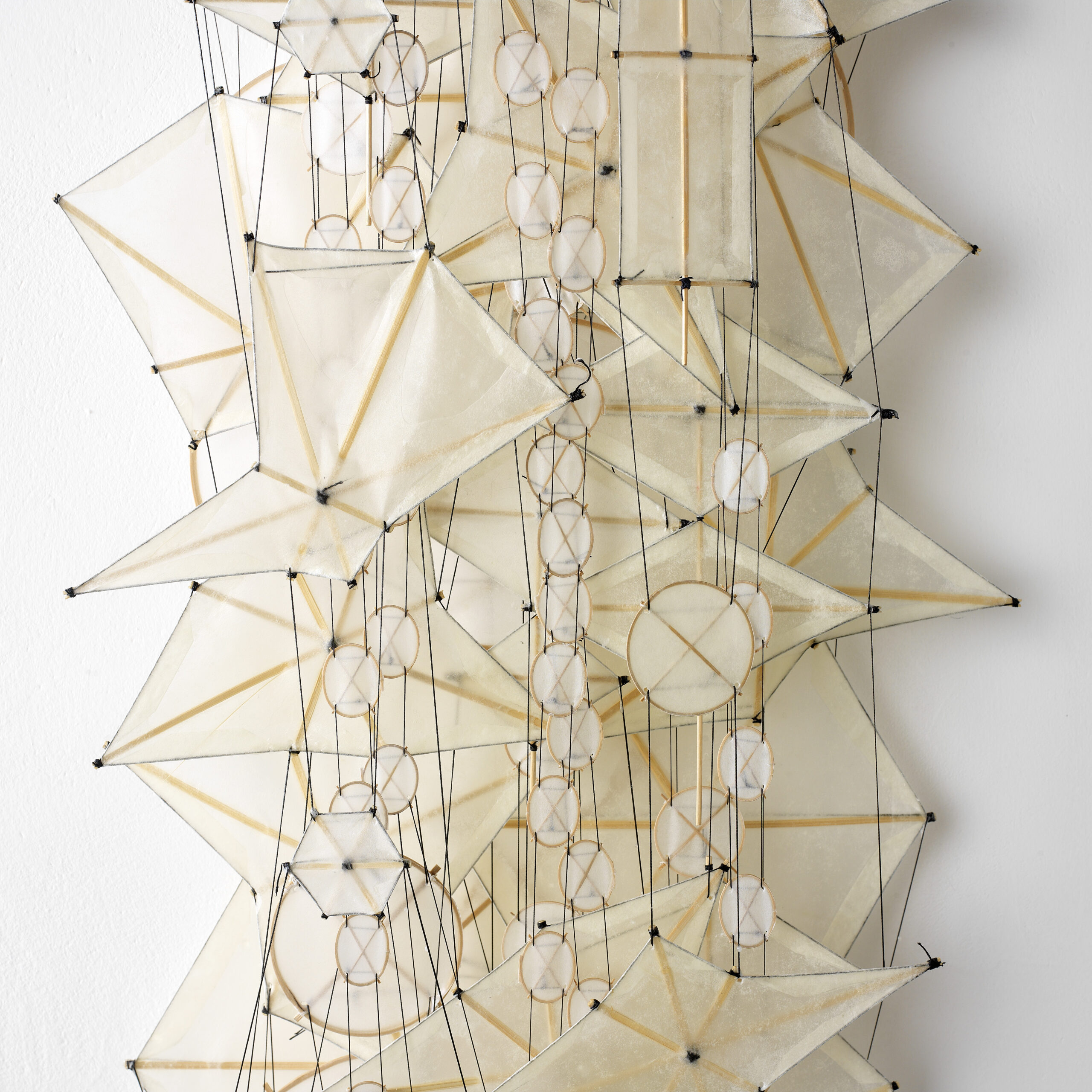 “Jacob Hashimoto V” is American artist Jacob Hashimoto’s fifth exhibition at Studio la Città since he began working with the gallery in the late 1990’s. For this exhibition Hashimoto is preparing a number of new, wall based kite installations which continue his exploration into the seemingly endless possibilities and curious juxtapositions between landscape and abstraction. Additionally, Hashimoto is designing on a room-sized environmental installation that will completely dominate back half of the gallery space. This complex installation is comprised of a number of intersecting elements, from digital sculpture to drawing to canopies of thousands of kites, all intersecting to create a sculptural environment that will wrap around the viewer in an overwhelming physical collage. This installation directly references older bodies of his work, quite literally wrapping them around and weaving them through more recent projects, creating a non-linear timeline of a vision that has taken him most of the last decade to realize. Visitors to the space will be allowed to walk under, through, and around the sculptural installation, the texture, lighting and angle of the work, shifting and changing as they travel through its lush architecture.
