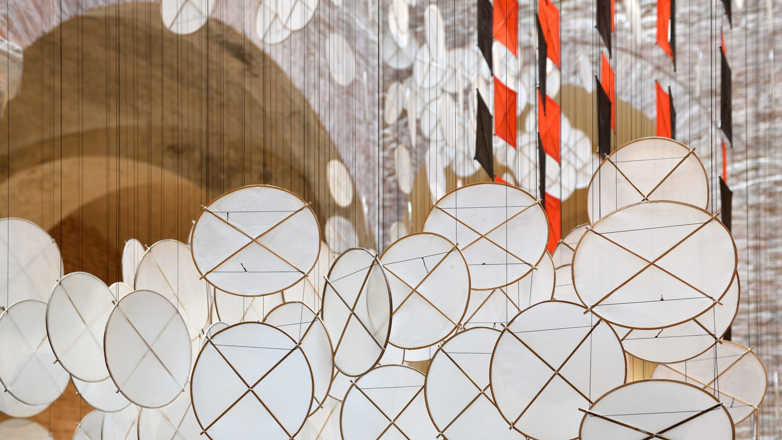 Path to the Sky is a delicate and evocative installation— a cascade of small kites, bound together in an embrace, floating silently in the Museum’s inner sky. It symbolizes the unity of human beings, an illusory bridge between earth and sky. Hashimoto’s work resonates with the symbolic and physical essence of the space that hosts it: the Santa Maria della Scala, a place that has transformed through centuries.