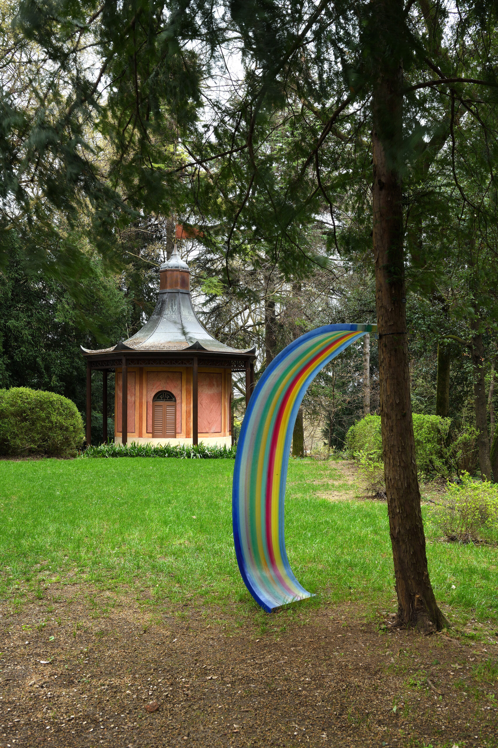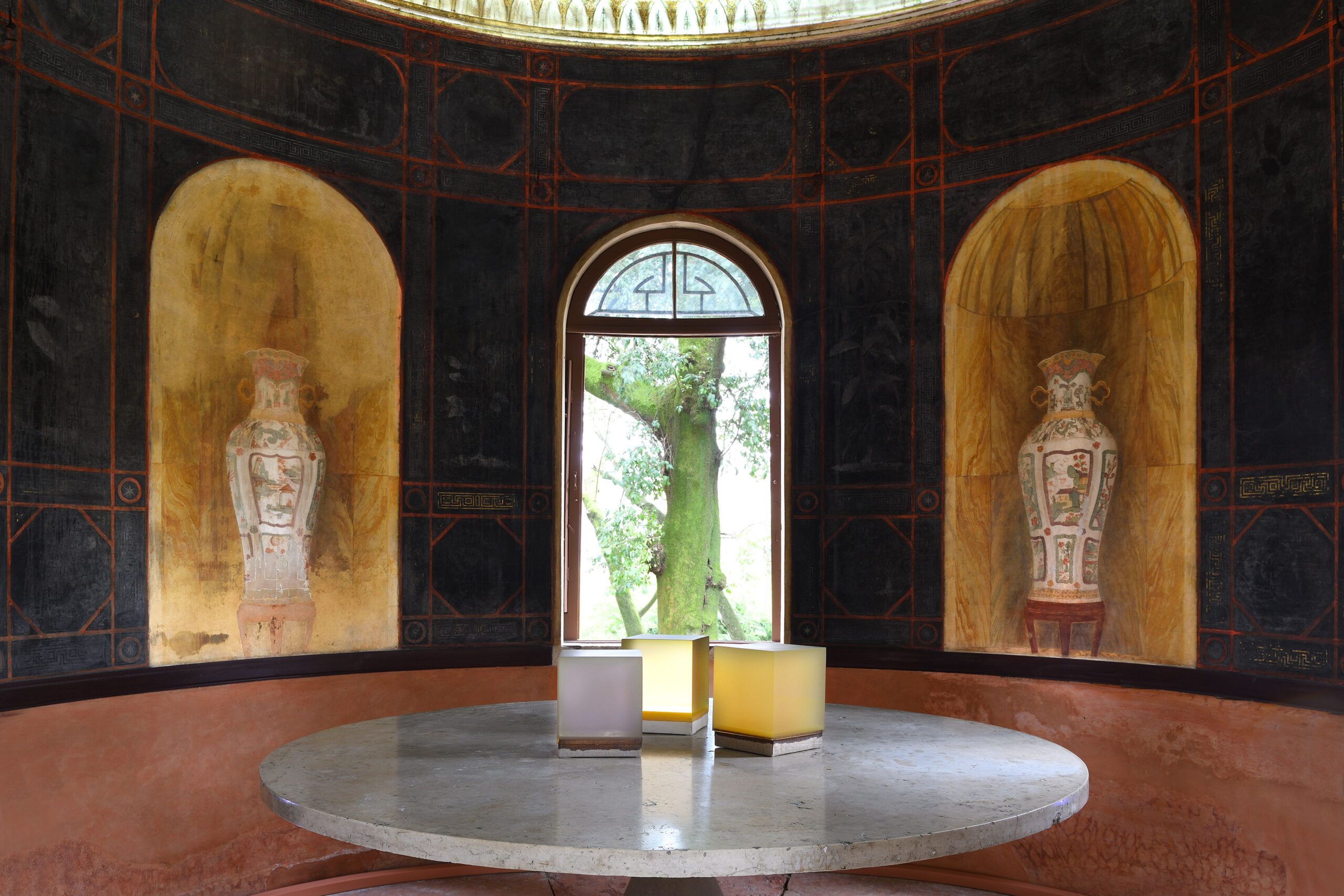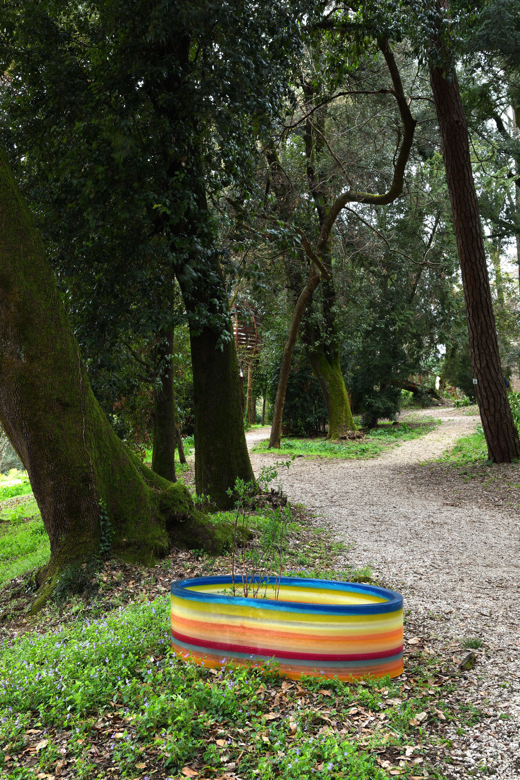 Aperto al pubblico nel 2025 dopo tre secoli, il Bosco amplia il complesso storico della Villa offrendo un percorso tra biodiversità e paesaggio. Qui si inseriscono le opere di Hamak: forme geometriche in resina e pigmento – blocchi, colonne e cubi – che non imitano la natura ma ne interpretano i processi.